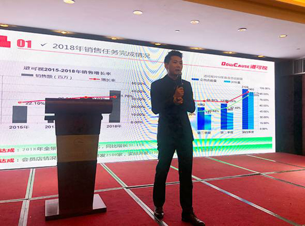 隨后深圳道可視科技有限公司銷售總監(jiān)邢偉發(fā)表了《道可視2018年度市場(chǎng)總結(jié)及新年計(jì)劃》主題演講,他表示2018年道可視銷售增長(zhǎng)率同比增長(zhǎng)31.11%,會(huì)員店數(shù)量開發(fā)2128家,整體表現(xiàn)還是非常不錯(cuò)。