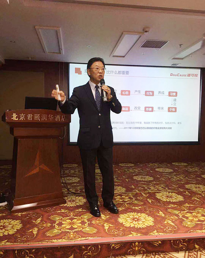 會議伊始,道可視代理商王總率先上臺致辭,王總對于現(xiàn)場來賓的蒞臨表示熱烈的歡迎,王總指出,在如今這樣一個競爭激烈的市場環(huán)境,傳統(tǒng)門店正面臨著嚴峻考驗,門店早已不是單打獨斗,不僅僅只是單純的賣貨,還需要具備一定的核心的競爭力和周到的服務。