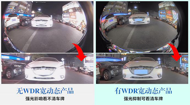 在實(shí)測中,我們將有WDR和無WDR的視頻做了對比,對比發(fā)現(xiàn),有WDR的視頻里,車牌更清晰,盲區(qū)更清晰,夜晚更明亮,畫質(zhì)更細(xì)膩,有效地解決了生活中攝像頭遇到汽車大燈等強(qiáng)光時(shí),畫面曝光、眩光等問題。