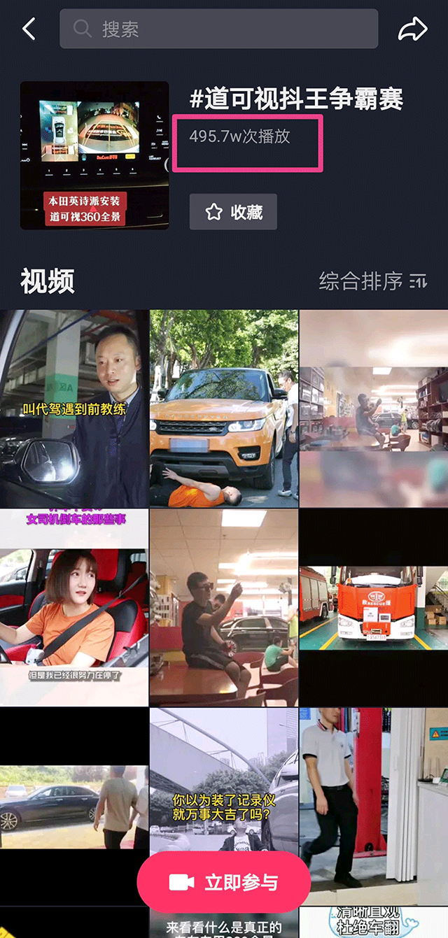 據(jù)道可視官抖顯示,截止至9月30日活動結(jié)束,道可視2020“抖王”爭霸賽第一季已獲得495.7W次的播放量,上傳的原創(chuàng)視頻有491個,來自全國各地的道可視代理商們紛紛曬出了自家的“寶貝”,掀起了一陣抖音曬360°全景的熱潮。
